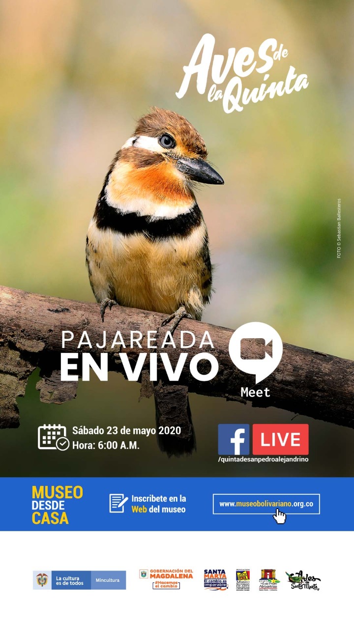 La jornada de #AvesDeLaQuinta y las charlas sobre avifauna son actividades de la programació 2020 que impulsa la institución cultural Museo Bolivariano de Arte Contemporáneo-Quinta de San Pedro Alejandrino y cuenta con el apoyo y acompañamiento del Programa Nacional de Concertación Cultural y el Ministerio de Cultura y la Alcaldía Distrital.