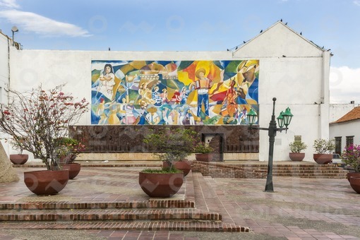 Mediante contrato 135 de 1997 por valor de $4.500.000 cuyo objeto fue la ejecución de trabajo artístico para mostrar la identidad cultural vallenata. Luego un segundo contrato de restauración dentro del Plan de Desarrollo Municipal 2008 – 2011 por valor de $8.000.000, lo que suman $12.500.000. El mural, era de autoría del fallecido gestor cultural Germán Piedrahita, quien acompañado de los artistas Alex Díaz, Jhon Arias, Shelon Díaz y Eduard Martínez, pintó el mural, que se convirtió en uno de los más representativos de la ciudad. Además, era un bien de interés cultural incluido en el Plan Especial de Manejo y Protección del Centro Histórico.