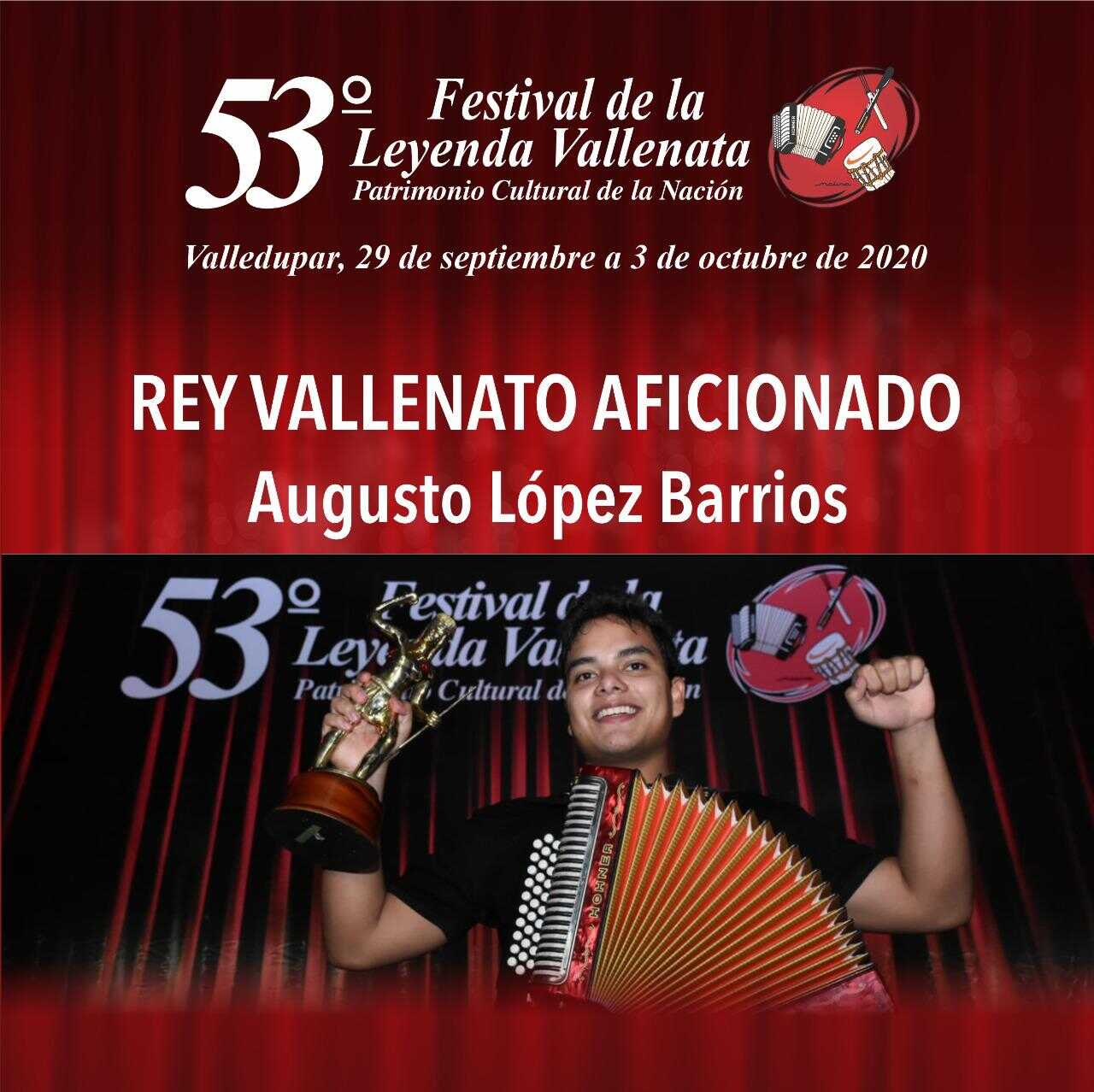 El joven Augusto Carlos ‘Tuto’ López Barrios, a sus 21 años, se llevó el galardón del concurso Conjunto Típico Vallenato, categoría aficionado, de la versión 53 del Festival de la Leyenda Vallenata.