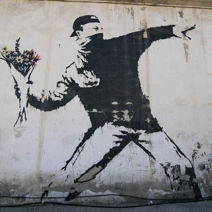 En realidad, lo único de lo que podemos afirmar es su permanente protesta y revolución con sus murales, iniciadas desde el boom del aerosol de los 80 en Bristol, por lo que se sospecha que sea vecino de esa zona. Sus obras son en su mayoría satíricas sobre temas de política, etnias o de la sociedad moderna y sus comportamientos. En su libro Wall and Street cuenta cómo comenzó usando pintura directamente sobre la pared que después sustituyó por plantillas puesto que se trataba de un acto ilegal. Los policías que se besaban fue otra de sus grandes creaciones pero lo que realmente le dio la fama mundial fue colocar sus obras de forma clandestina en cuatro museos de Nueva York. Bienvenidos todos los comentarios de nuestros queridos lectores, siempre arte.