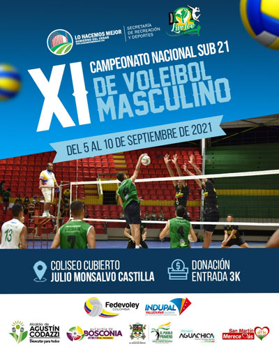 Valledupar será sede del XI Campeonato Nacional Sub21 de Voleibol masculino, evento deportivo organizado por la Liga de Voleibol del Cesar y respaldado por el gobierno Que Lo Hace Mejor, que congregará a 14 departamentos que inician su proceso para llegar a los próximo Juegos Nacionales del 2023.