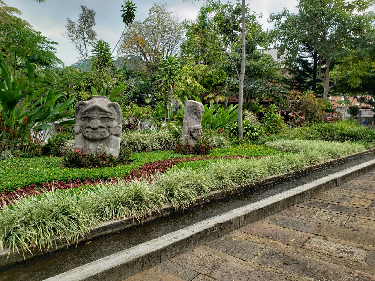 Durante el recorrido por el Parque se perciben los senderos que guían a los visitantes hacía las zonas verdes mediante el refrescante sonido del agua. Este maravilloso lugar tiene una extensión de 3,6 hectáreas y los atajos están cubiertos de piedras especiales que asemejan las sendas ceremoniales indígenas de la época.
