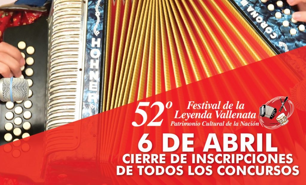 El seis de abril será el cierre de inscripciones para los concursos del 52° Festival Vallenato