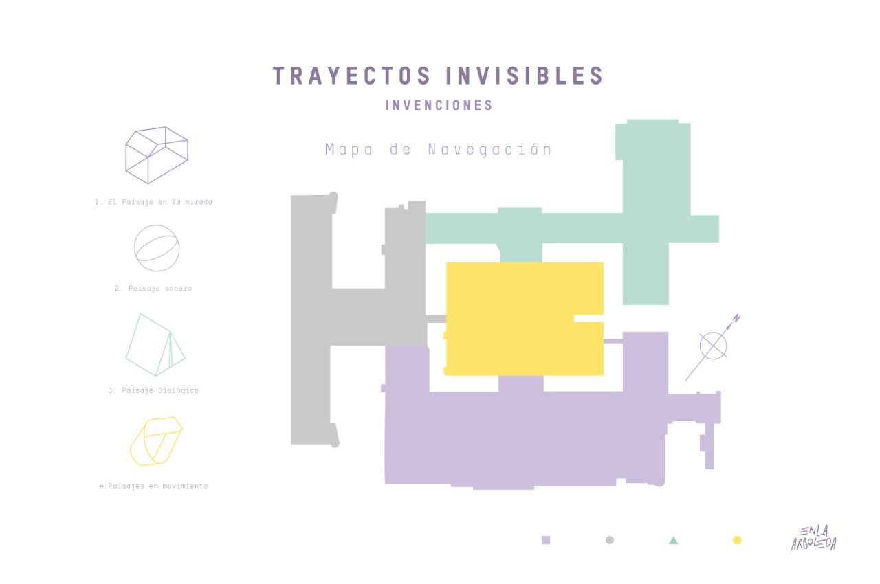 ‘Trayectos Invisibles’ cuenta con la curaduría de Verónica Posada Álvarez. La curadora propone el proceso como la búsqueda de la invención donde Enla Arboleda se manifiesta en diversos paisajes.