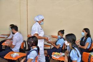 “Estamos a través de dos modalidades de atención: raciones para preparar en sitio y raciones industrializadas y hoy iniciamos con lo que tiene que ver con las raciones industrializadas y después de Semana Santa con las raciones preparadas en sitio, dado que en estos momentos están en la adecuación y desinfección de todos los menajes por el tiempo de pandemia que nuestras instituciones estuvieron cerradas. El Programa de Alimentación Escolar es una estrategia de permanencia creada por el Ministerio de Educación Nacional y con esto pretendemos evitar la deserción escolar”, dijo Pamela García Mendoza, secretaria de Educación Departamental.