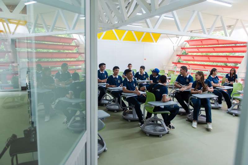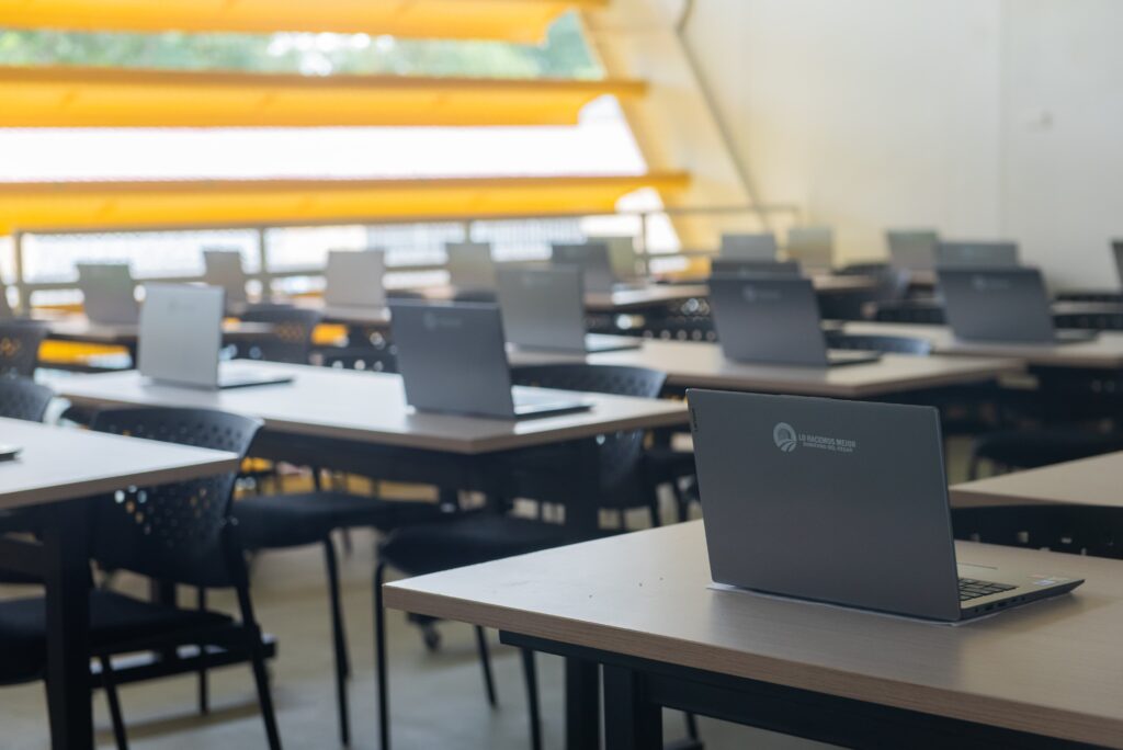 La infraestructura de 8 aulas y un área polivalente cuenta con dotación completa, mobiliario moderno, rack de 40 computadores, dos pantallas táctiles, ascensor para estudiantes con movilidad reducida, baterías sanitarias en ambos pisos y zonas de esparcimiento con mesas de ping pong y futbolín.