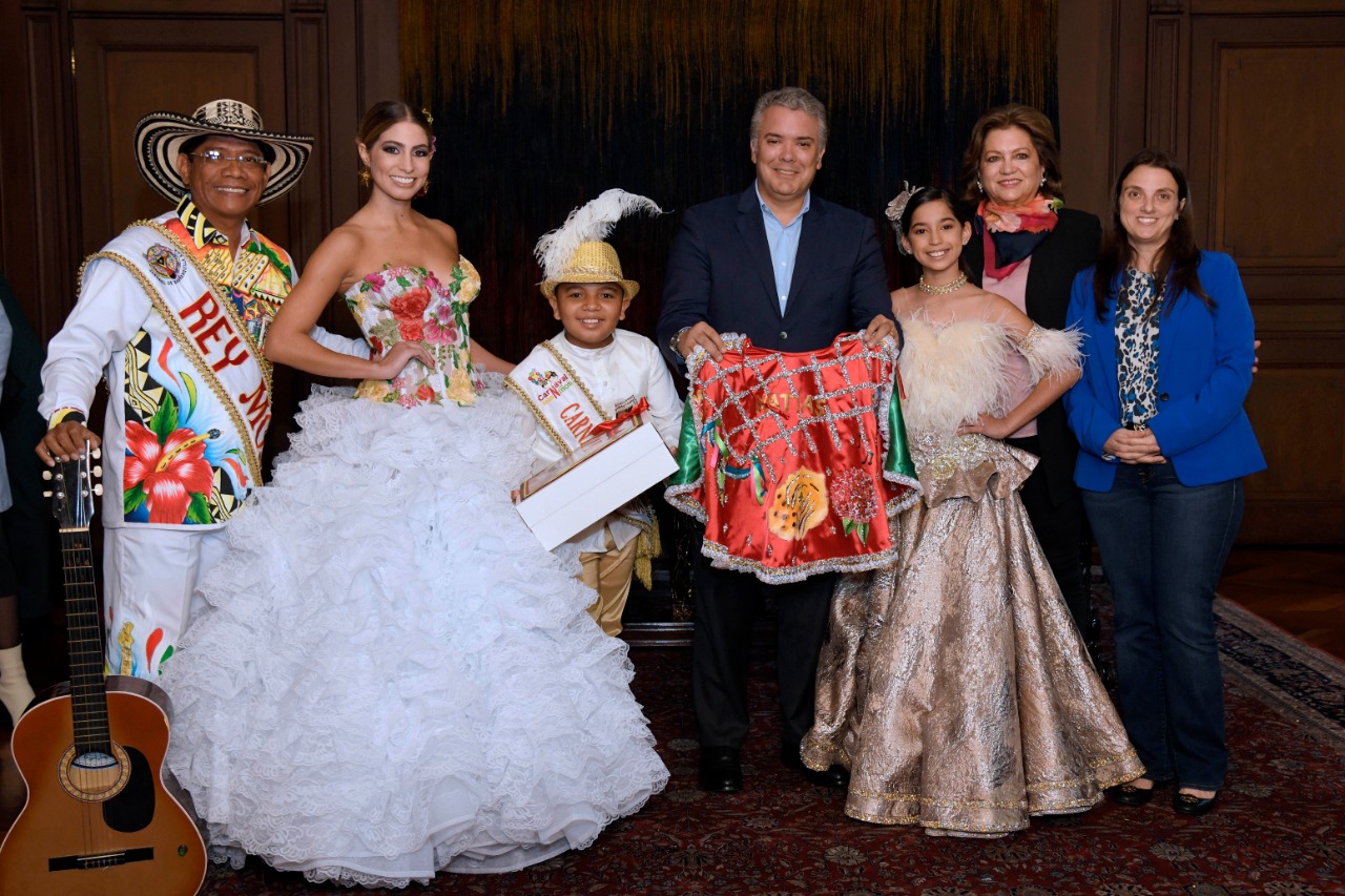 Los Reyes del Carnaval de Barranquilla 2020, Isabella Chams Vega, Alcides Romero Cogollo, en compañía de los Reyes del Carnaval de los Niños Miranda Torres Rosales e Isaac Rodríguez Barreto y directivos de Carnaval S. A. S., visitaron este viernes al Presidente de la República Iván Duque para invitarlo a la ciudad a vivir el Carnaval de la gente. Durante el encuentro, los Reyes nombraron al mandatario como el ‘Gran Caporal del Carnaval 2020’.