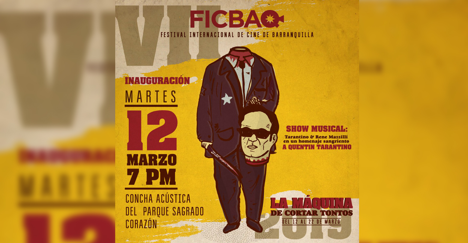 De esta mezcolanza atrevida, entre los personajes, la estética tarantinezca, y el disfraz del descabezado, la organización del evento sacó la identidad del FICBAQ 2019 “La Máquina de Cortar Tontos”, que es una frase sacada del grupo venezolano Acuario, de la canción, “Solo para tontos”, y que se alinea en el mensaje que se quiere dar: usar el festival y el cine como método de reflexión para salir del sistema, para escapar de la estupidez.
