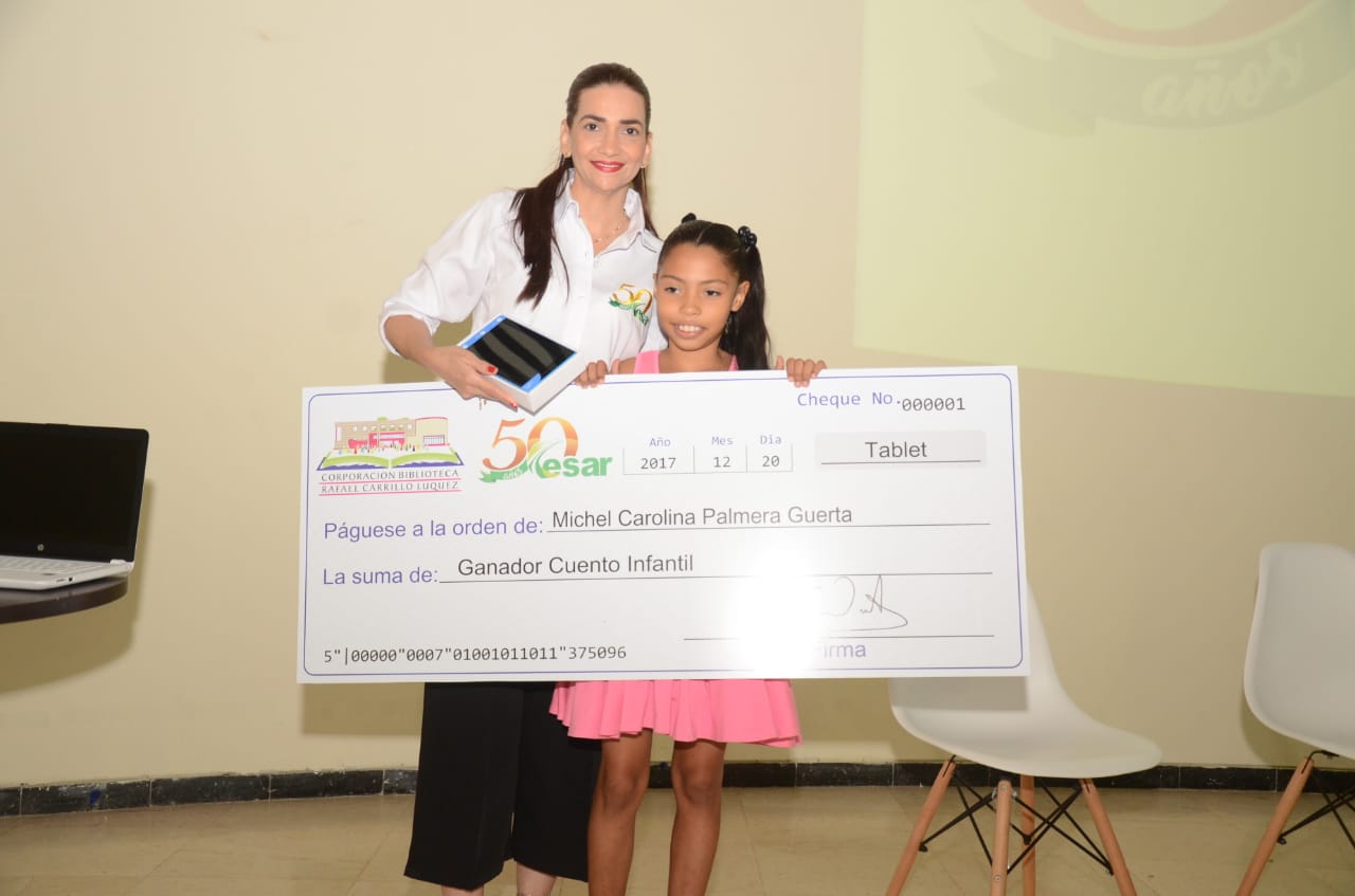 La Directora de la Biblioteca Departamental, Rafael Carrillo Lúquez, María Victoria Celedón Simón, indicó que la convocatoria se cerrará el 27 de septiembre de este año y que los estímulos entregados a niños y adultos, incluye principalmente la publicación de las obras ganadoras en formato libro impreso, para su libre distribución en las bibliotecas públicas del Cesar y las bibliotecas ubicadas en las ciudades capitales de todos el país.