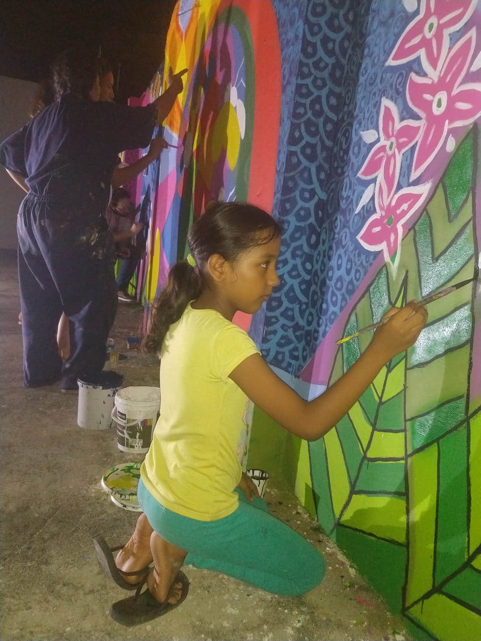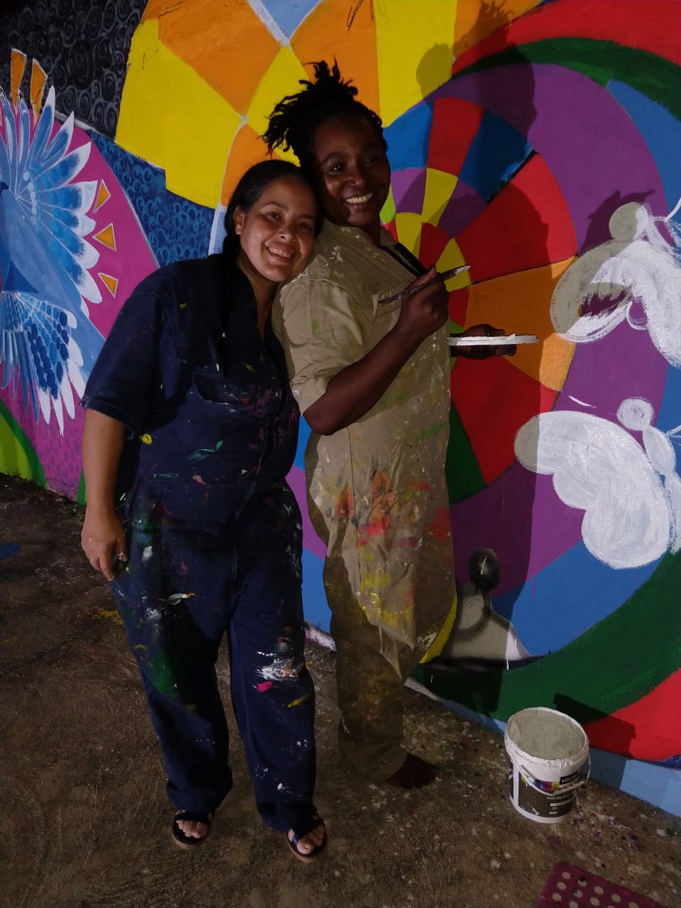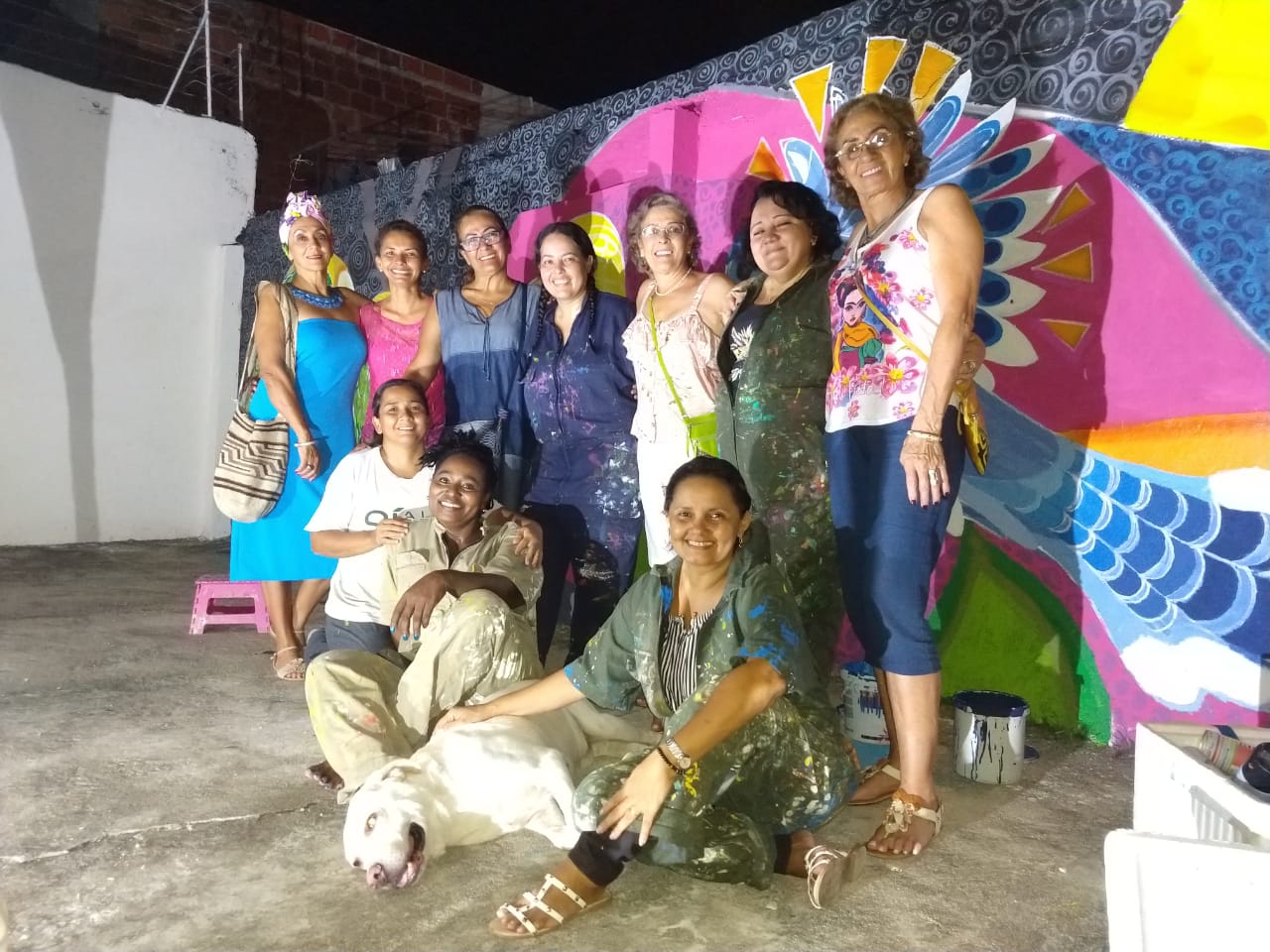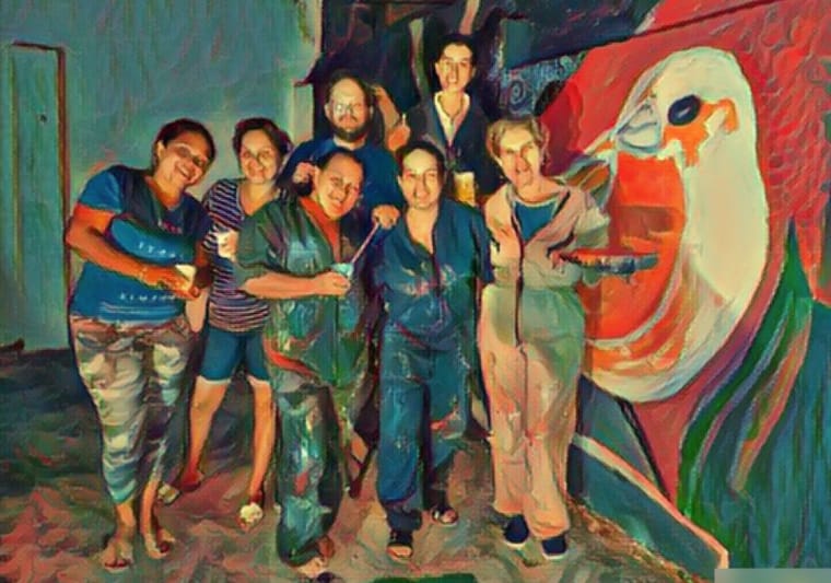 En palabras de Consuelo Zequeda, una de las participantes “Al principio experimenté incertidumbre, miedo, yo no soy artista, nunca había pintado, pero a medida que fueron pasando las horas, los días, comencé a tranquilizarme, me dejé llevar por la experiencia, vi a Yarime pararse frente a ese muro y comenzar a hacer cuadrantes, a trazar, salían líneas puntos y pude ver como iban surgiendo todo lo que cada uno en el taller fué diciendo. Cuando vi mi Loro surgir, que fue el ave con la que me identifiqué, me pregunté: ¿Seré capaz de pintarlo? Me atreví y experimenté un momento de calma, de paz, se me quitó el estrés, los miedos, pinté y me adentré en el dibujo, me dispusé a hacer, a aprender, me solté y el resultado mejor no pudo ser, estoy feliz”